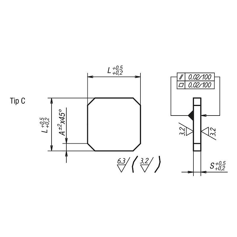 Tip C: Dayanma yüzeyleri ve yan yüzeyler frezelenmiş (Ra 3,2).