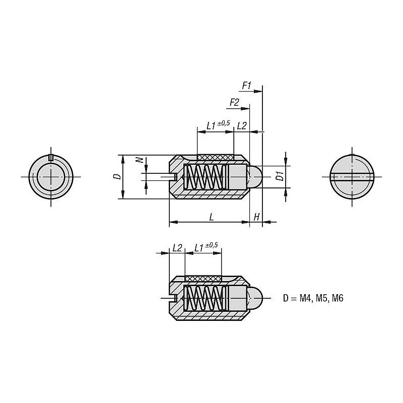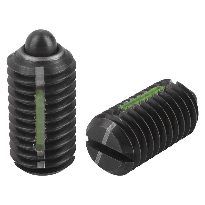 03021_LF – Yuvalı ve baskı pimli bilyalı setiskur vidalar, çelik, hafif yay kuvveti, diş kilidi ile