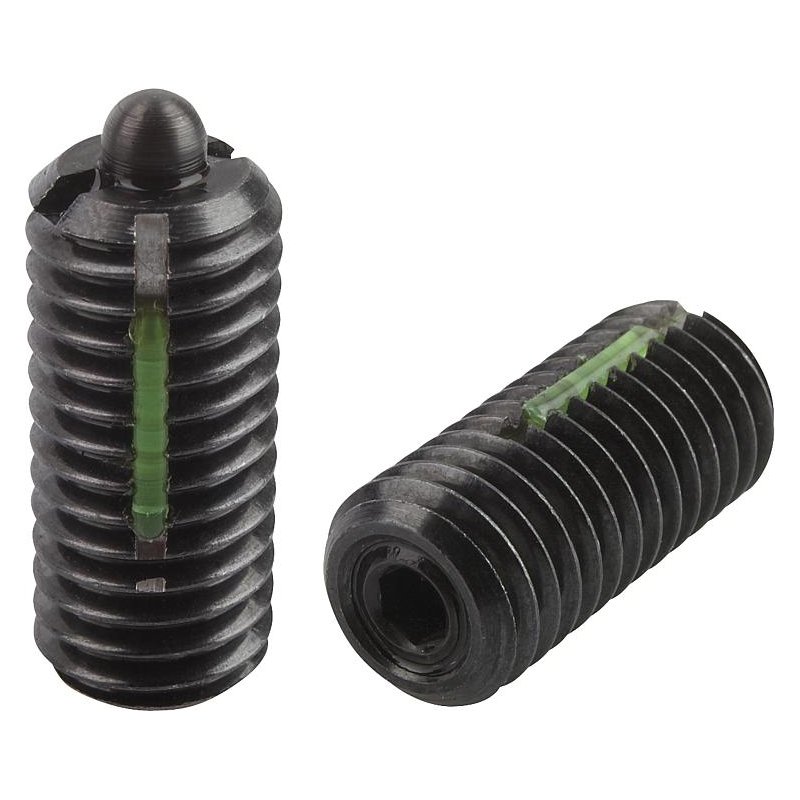 03041_SF – Altıgen soketli ve baskı pimli bilyalı setiskur vidalar, çelik, standart yay kuvveti, diş kilidi ile