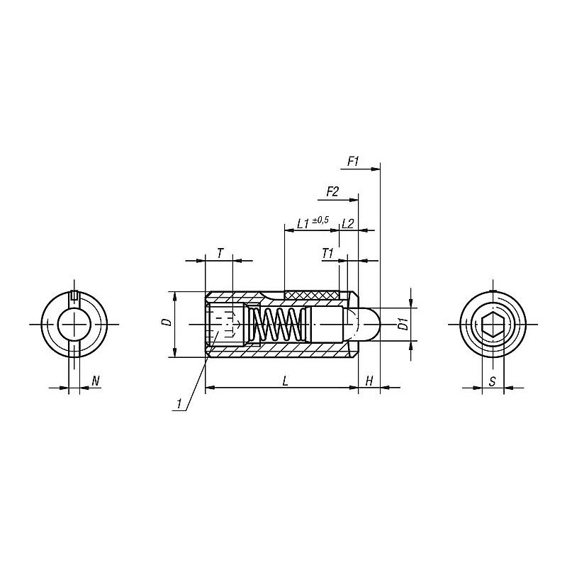 03051 – Bilyalı setskur vidalar, POM içten altıgenli ve baskı pimli, çelik, dişli sabitleyicili