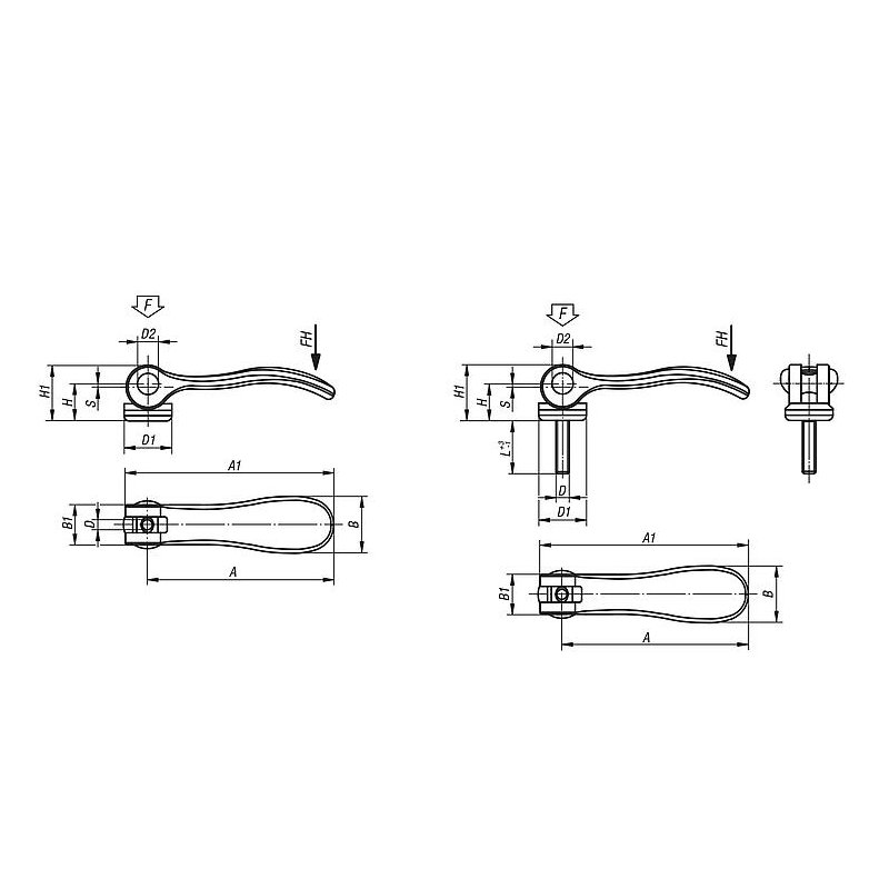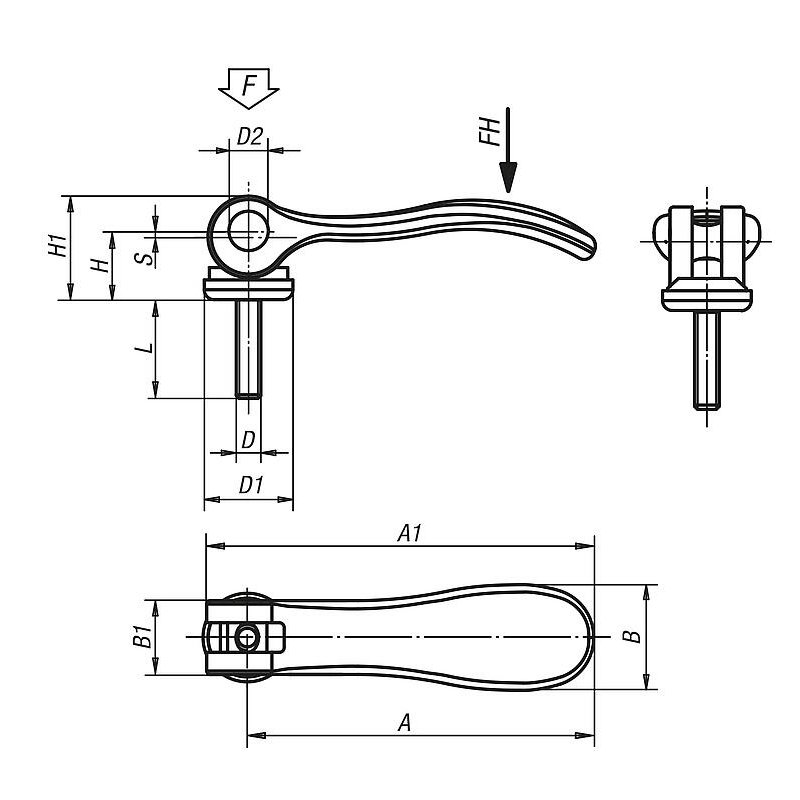 04232 inch – İç ve dış dişli alüminyum eksantrik kamlı kenetleme kolu, plastik-metal baskı pulu ve saplama cıvatası çelik veya paslanmaz çelik – inç