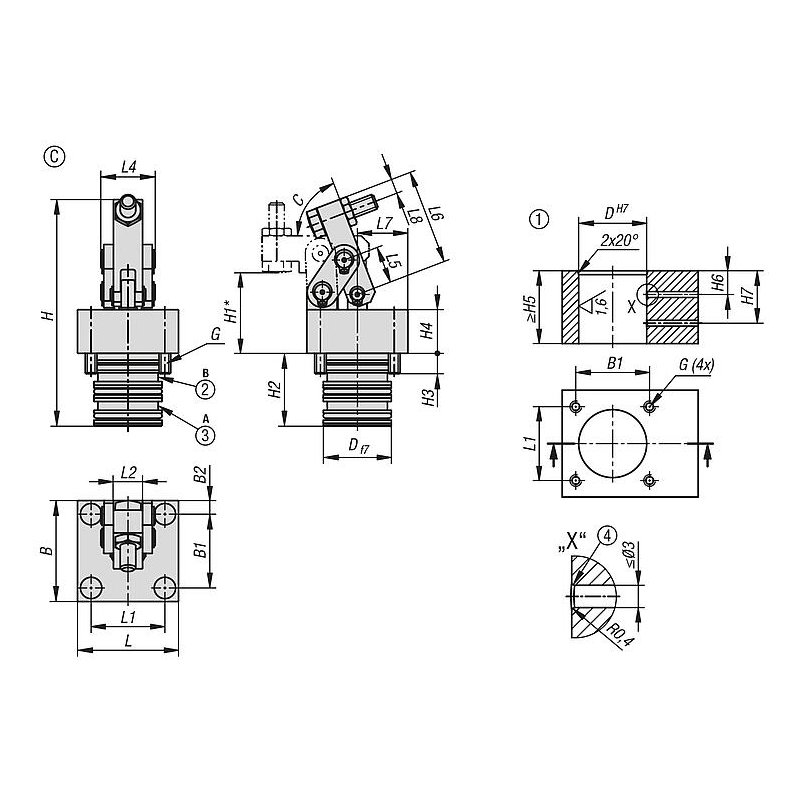04624-40_C – Kollu gerdirici hidrolik, çift kat etkili, form C, delikli kanallar