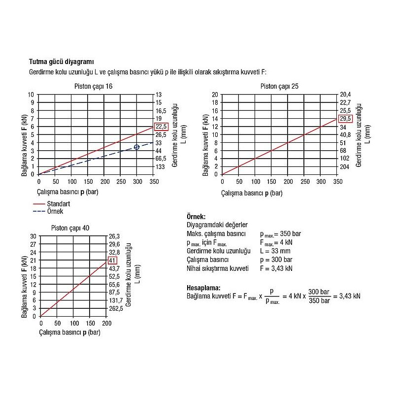 – Piston çapı 16 ve 25 için maks. çalışma basıncı: 350 bar.