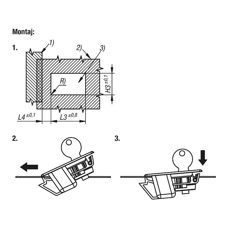 2. Kilidin ön tarafını kesit içine itin ve ileriye doğru bastırın.