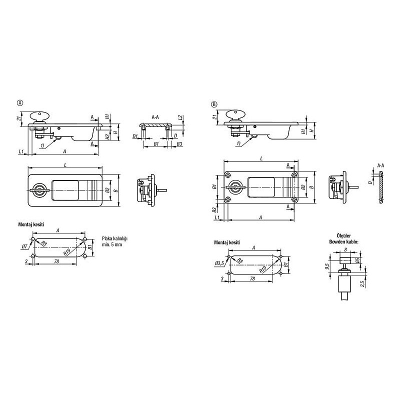 Bowden kablosu ve sabitleme vidaları teslimat kapsamına dahil değildir.