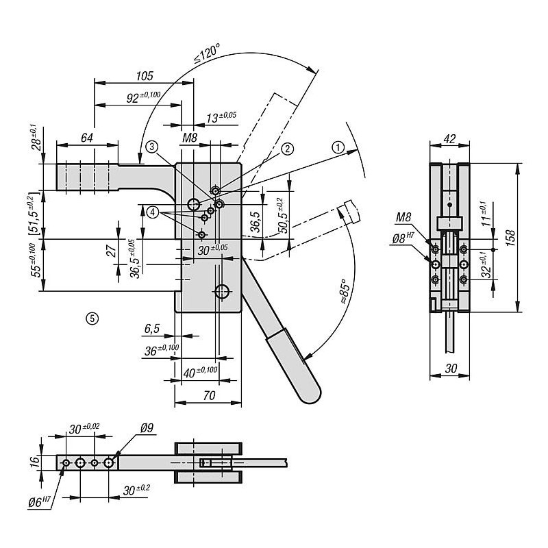 Entegre dirsek kolu mekanizmalı ve ölü nokta üzerinde kilitlemeli manuel bağlama elemanı.