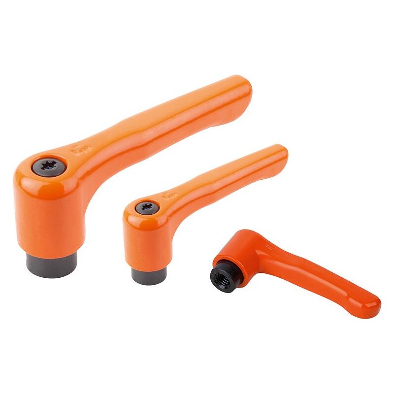 06448 – Sıkıştırma kolu çinko döküm, yassı, iç dişli, saten saf turuncu, dişli eleman perdahlanmış çelik