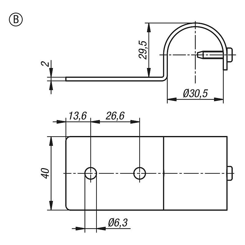30 mm dış çapı olan yuvarlak borulara ve profil borularına levha malzemelerinin takılması için.