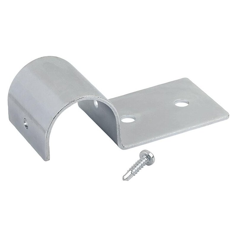 Levha malzemelerinin bağlanması için dayanıklı sabitleme elemanı. Dayanıklı çelik bilezik profil boruyla vidalanır ve böylece güvenli tutulmasını sağlar. Alternatif olarak, bilezikler önce yüzey elemanına da vidalanabilir. Bundan sonra tüm eleman boru şeklindeki çerçeveye kolayca takılabilir.