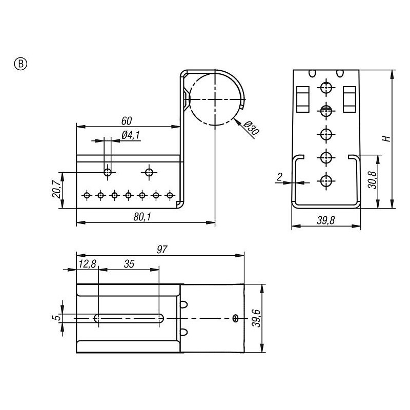 Form B: Dayanaklı. Bu asma braketi bir konveyörün sonunda mal ve iş parçası taşıyıcısı için durdurucu işlevi görür.