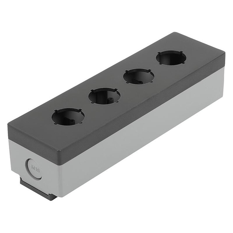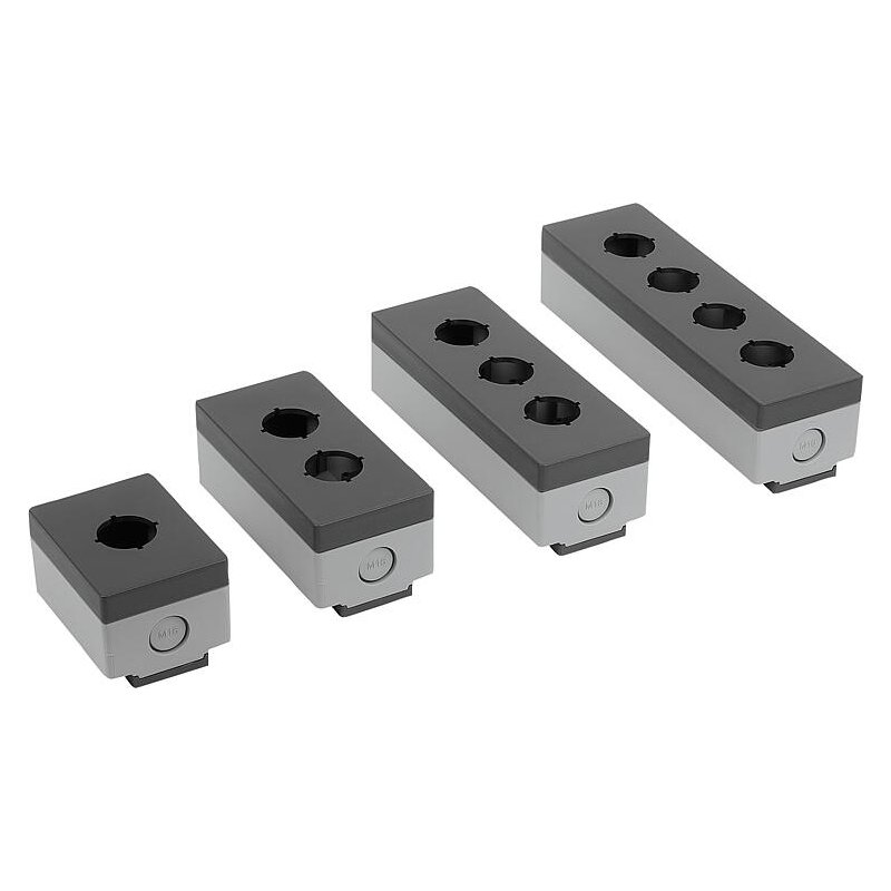 En fazla 4 kontrol noktası için boş muhafaza. PA6’dan yapılmış sağlam gövde, kontrol ve bildirim cihazlarını yerleştirmek için 22,3 mm’lik bir montaj çapına sahiptir. Tüm endüstriyel sektörlerdeki uygulamalar için kurulum muhafazası olarak uygundur. İç kısım, gerekli bileşenlerin montajı için yeterli alan sunar. Muhafaza, teslimat kapsamına dahil olan brakete basitçe yerleştirilir ve yerine oturtularak sabitlenir.
