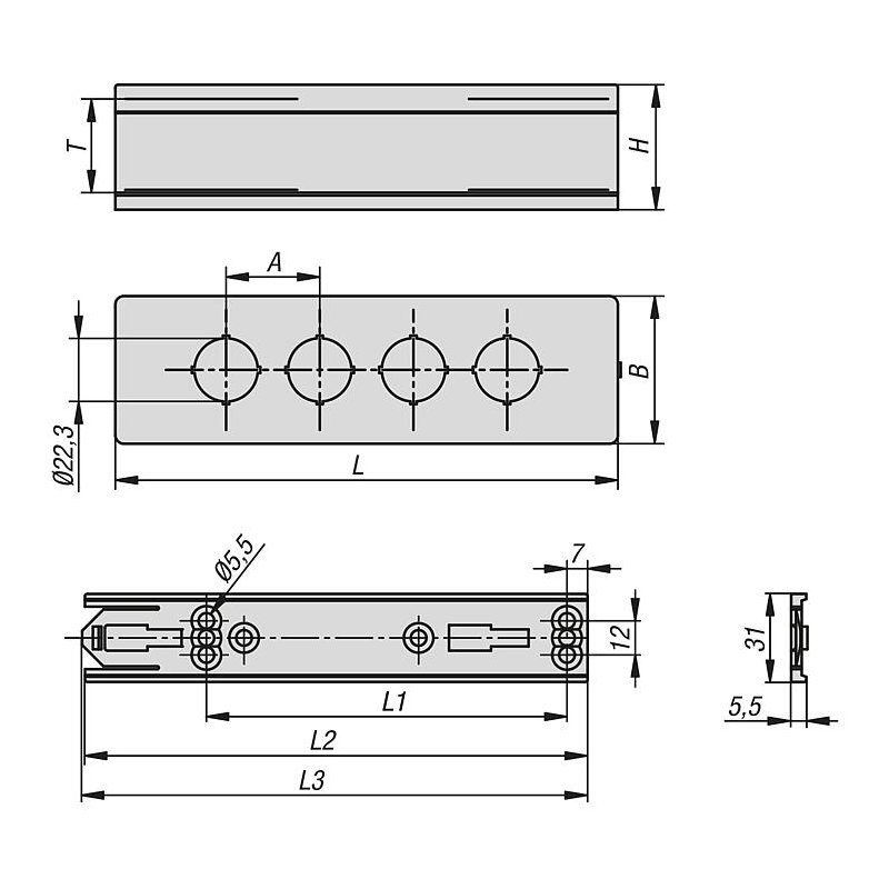 Braket, havşa başlı vidalar kullanılarak bir yüzeye veya profile vidalanır. Muhafaza daha sonra braketin üzerine yerleştirilir ve yerine oturtulur.
