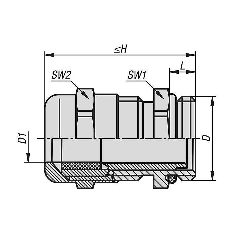 DIN EN 60423 uyarınca metrik bağlantı dişli kablo vida bağlantıları. Yalıtım ve gerinim önleme, iç taraftaki lameller ve conta üzerinden gerçekleşir.