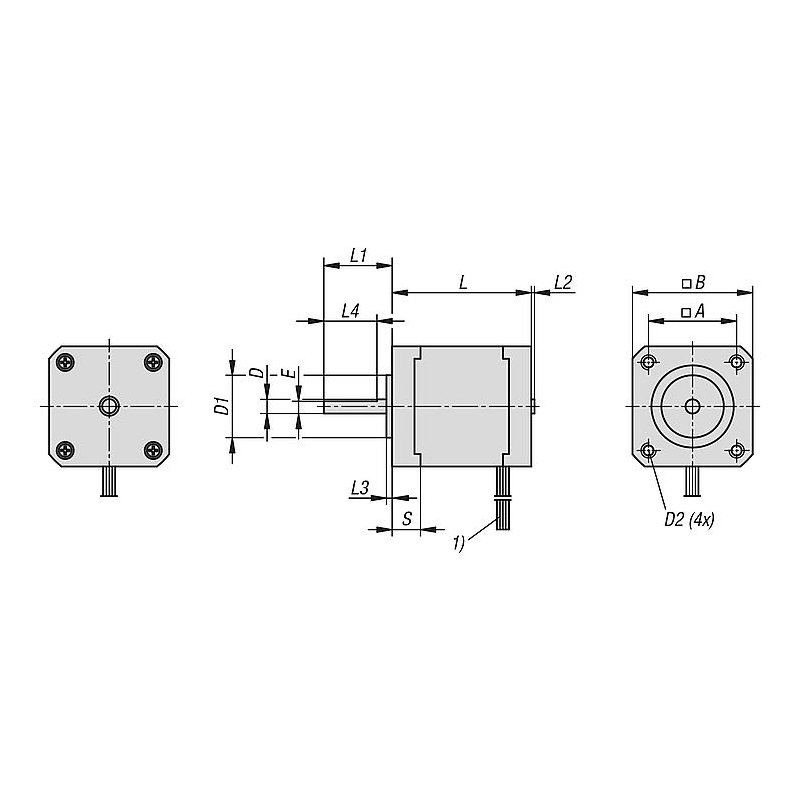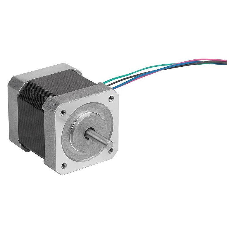 2 fazlı High-Torque adım motoru, NEMA 17, NEMA 23 ve NEMA 34 ebatlarında, düz mil ile (D mili). 1,8° adım açısı (tam adım), 4 damarlı bağlantı kablolu.