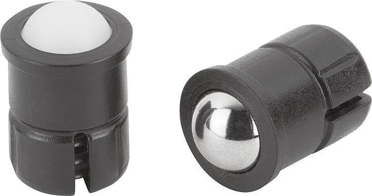 Küre: Paslanmaz çelik veya POM.Model:Kovan: Siyah. Küre: Sertleştirilmiş, kaplamasız.