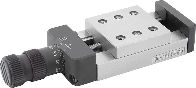 Bu hassas kızak yatakları, başka alanların yanı sıra makine, düzenek ve ölçüm cihazları yapımında ve ayrıca optik ve hassas mekanik endüstri alanında kullanılır. Ortadaki ayar cıvatası “M1” yerine bir sustalı kol 06460 kullanılabilir.