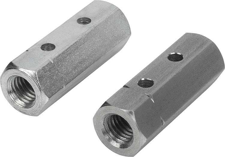Altıgen gerdirmeli kilit somunları. Bir yandan sağdan dişli ve diğer yandan soldan dişli.