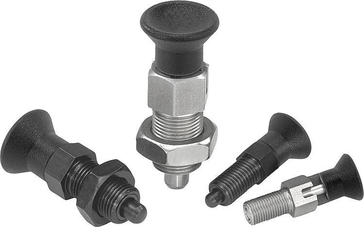 Bilgi:Kilitleme bulonları, kilitleme konumunun enine kuvvetler tarafından değiştirilmesinin önleneceği yerlerde kullanılır. Ancak bulon elle çıkartıldıktan sonra başka bir kilitleme konumuna geçilebilir. Çıkartma uzun süre boyunca yapılacaksa ve kilitleme piminin geri sıçraması önlenecekse, Form C veya Form D kullanılmalıdır.Talep üzerine:Özel modeller.
