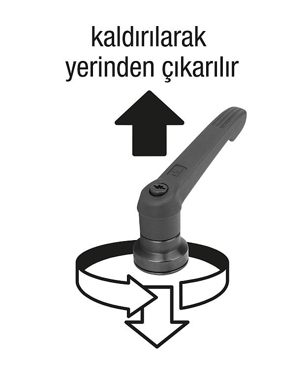 Tutma kolu, dişli çember aracılığıyla devreye alınmamış durumda dişli tertibatı elemanına oturtulmuştur, bu şekilde dişli sabitlenebilir veya çözülebilir. Tutma kolu kaldırılarak pozisyonu değiştirilebilir ve yay gücü ile tekrar dişli çemberine oturtulabilir.