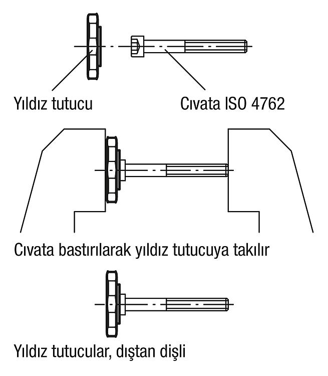 Yıldız Tutamak (Civatalar İçin) İçten Altıgen